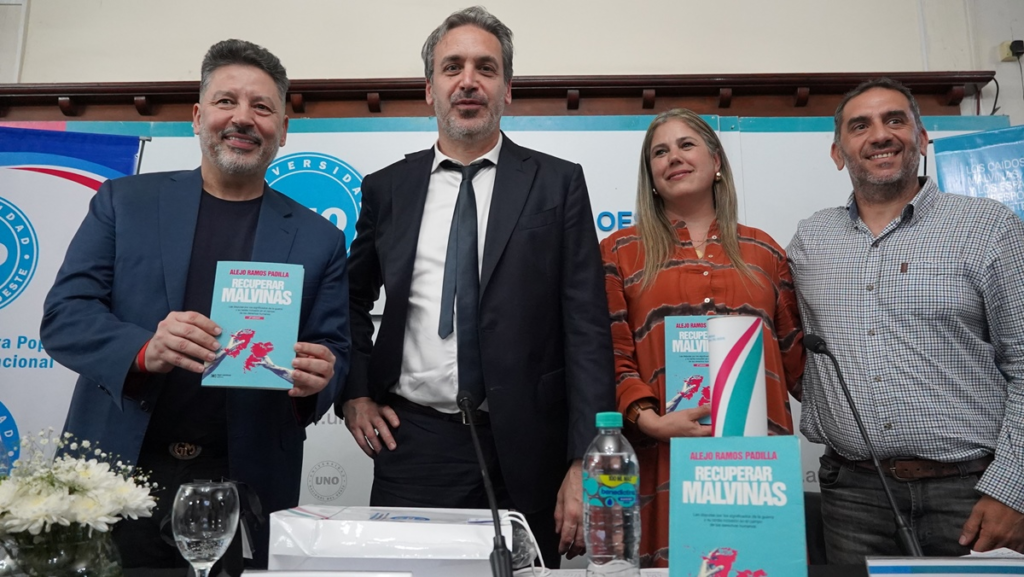 Asimismo, el jefe comunal expresó “Quiero agradecerte Alejo por la presencia y por todo lo que has investigado para presentar este libro, no solo como intendente de la ciudad sino, también, como integrante de esta universidad. La palabra frente a quienes para nosotros son un farro de luz, nuestros Veteranos de Malvinas”.