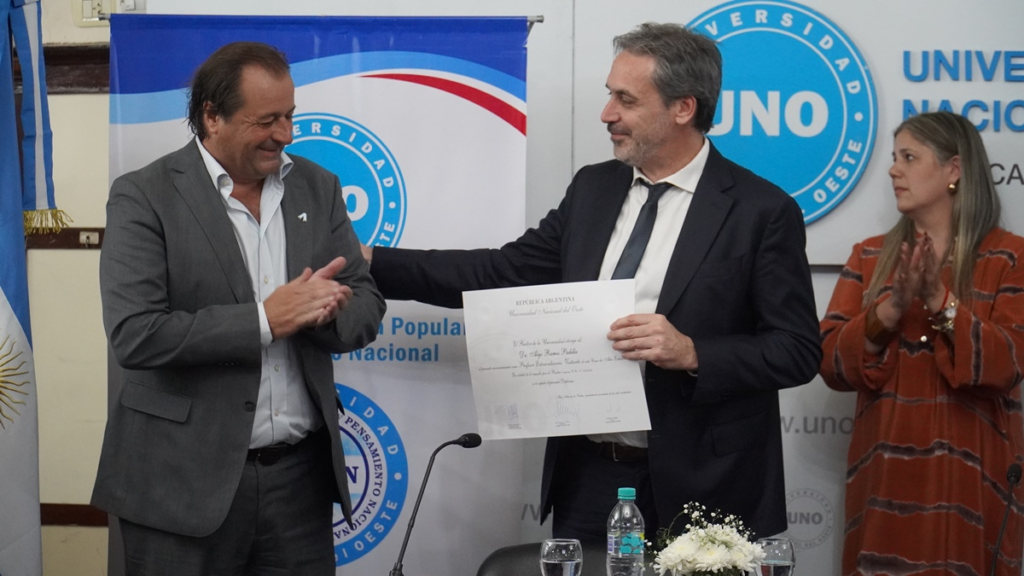 En esta jornada, el Rector de la Universidad Nacional del Oeste Gustavo Soos, designó al Dr. Alejo Ramos Padilla como profesor extraordinario visitante.